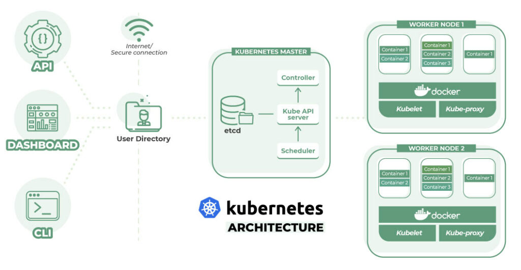 A Kubernetes implementation usually consists of one or several master and non-master nodes. Kubernetes allows you to use existing Docker containers and workloads. While drawing the basic constructs in a diagram is relatively simple, the definition and implementation of the exemplary K8S architecture for your business are quite complex.